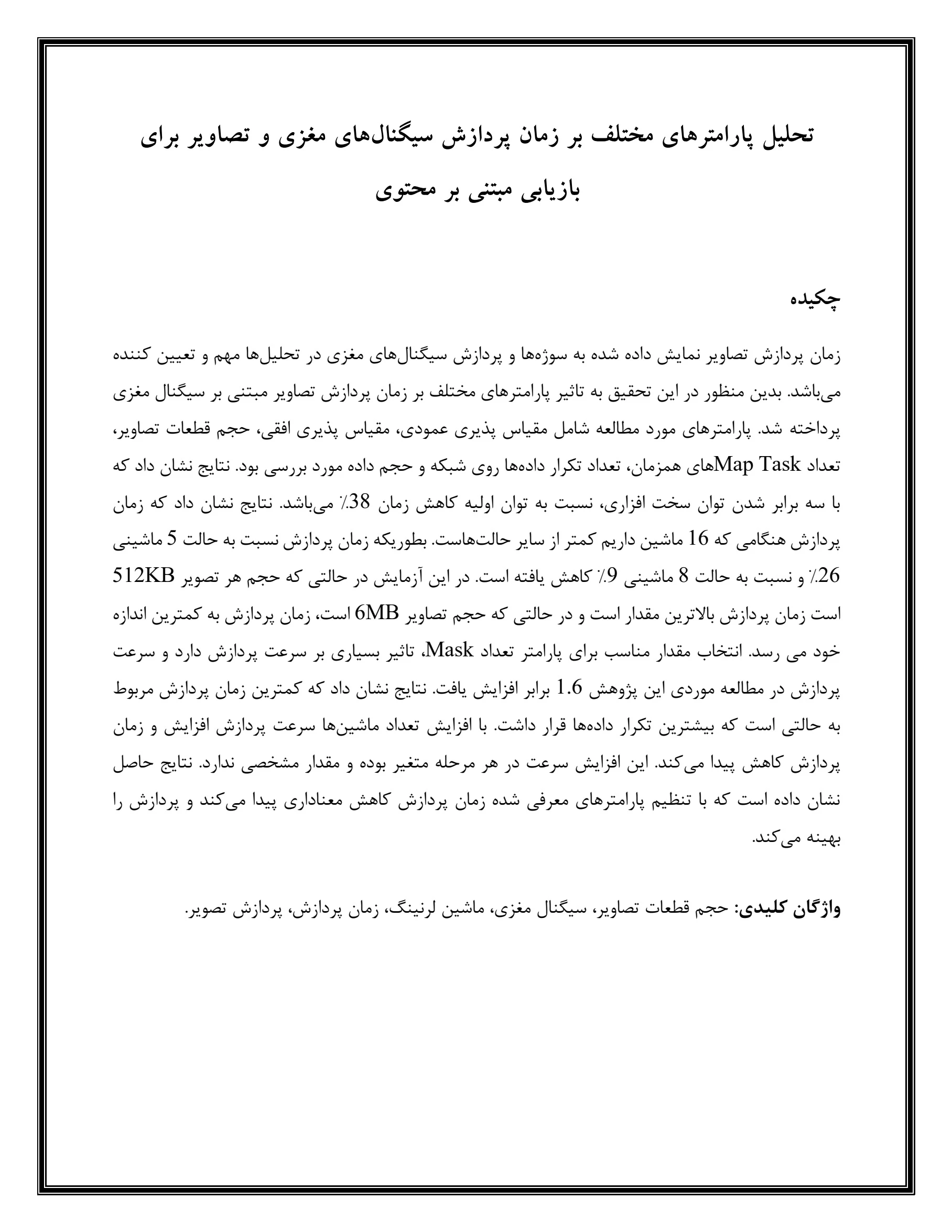 مقاله تحلیل پارامترهای مختلف بر زمان پردازش سیگنالهای مغزی و تصاویر برای بازيابي مبتني بر محتوي