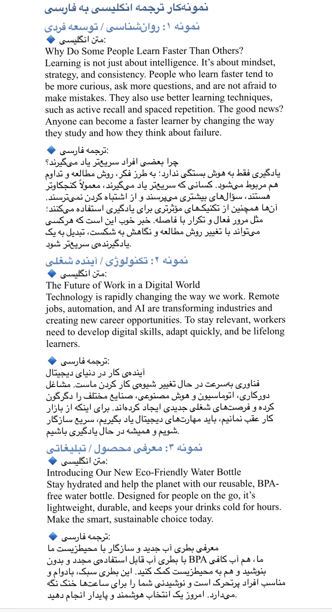 ترجمهی دقیق و روان انگلیسی به فارسی(عناوین مختلف)