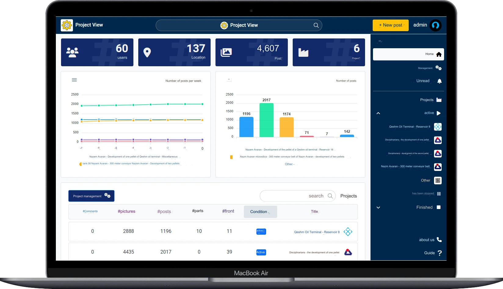 تولید گزارشها و نمودارهای متنوع (تعداد پستها، توزیع دستهبندی، میانگین زمان صرف شده).