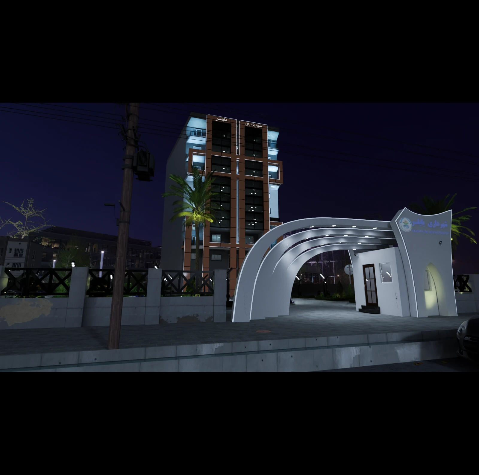 پروژه نور پردازی ساختمان اصلی شهرداری بابلسر و نور پردازی حیاط داخلی . لند اسکیپ و طراحی فضای محیطی و گل کاری و فضای سبز و کنار نور محیطی