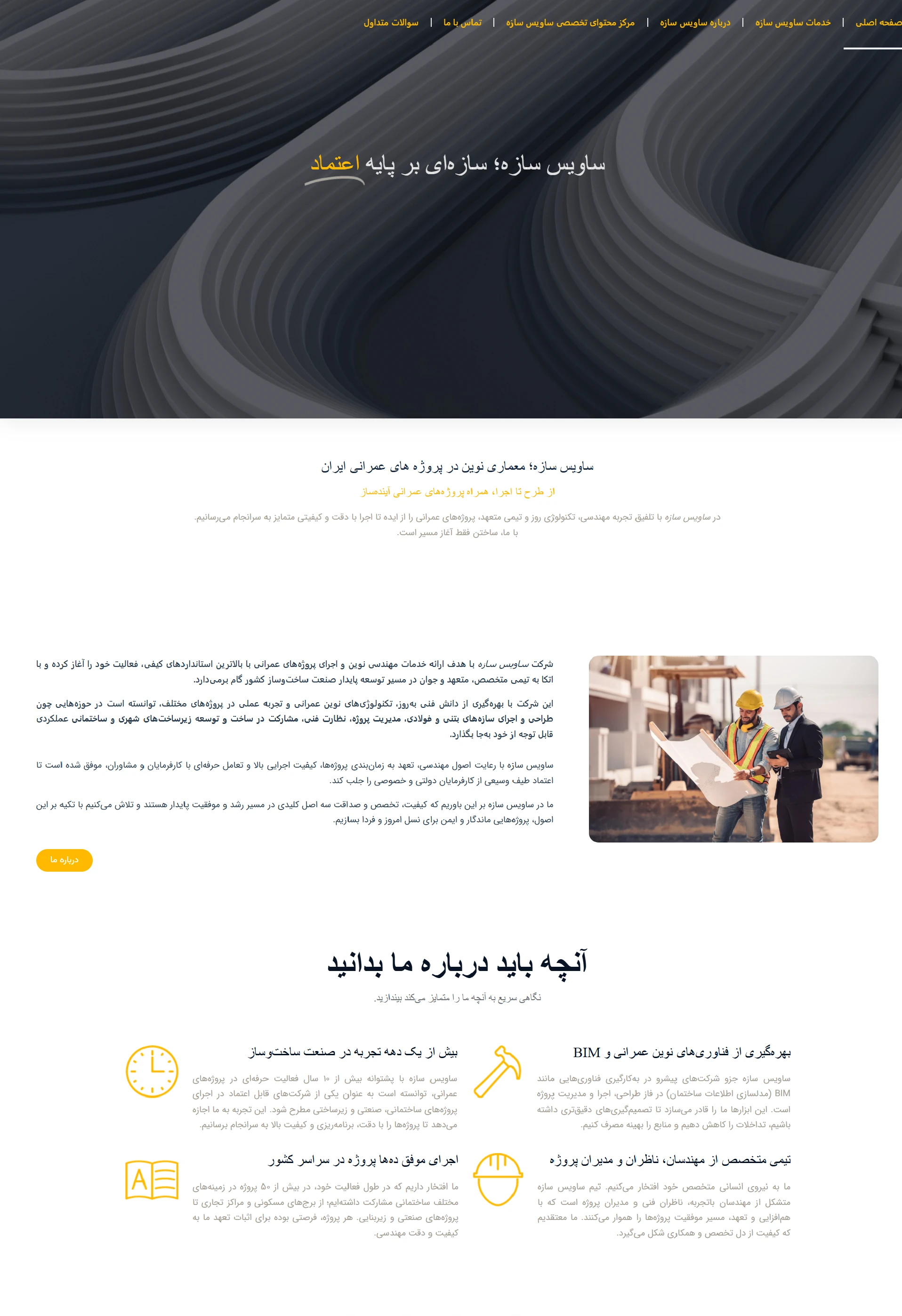 وبسایت شرکتی "ساویس سازه" طراحی شده با وردپرس و المنتور