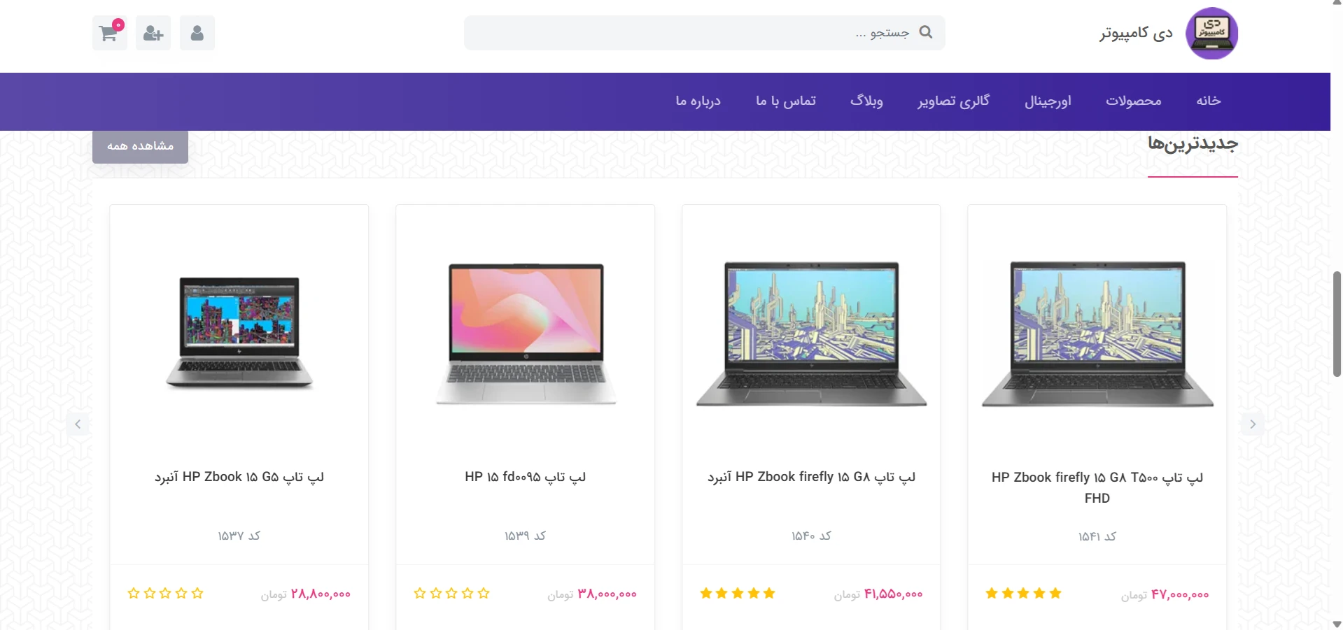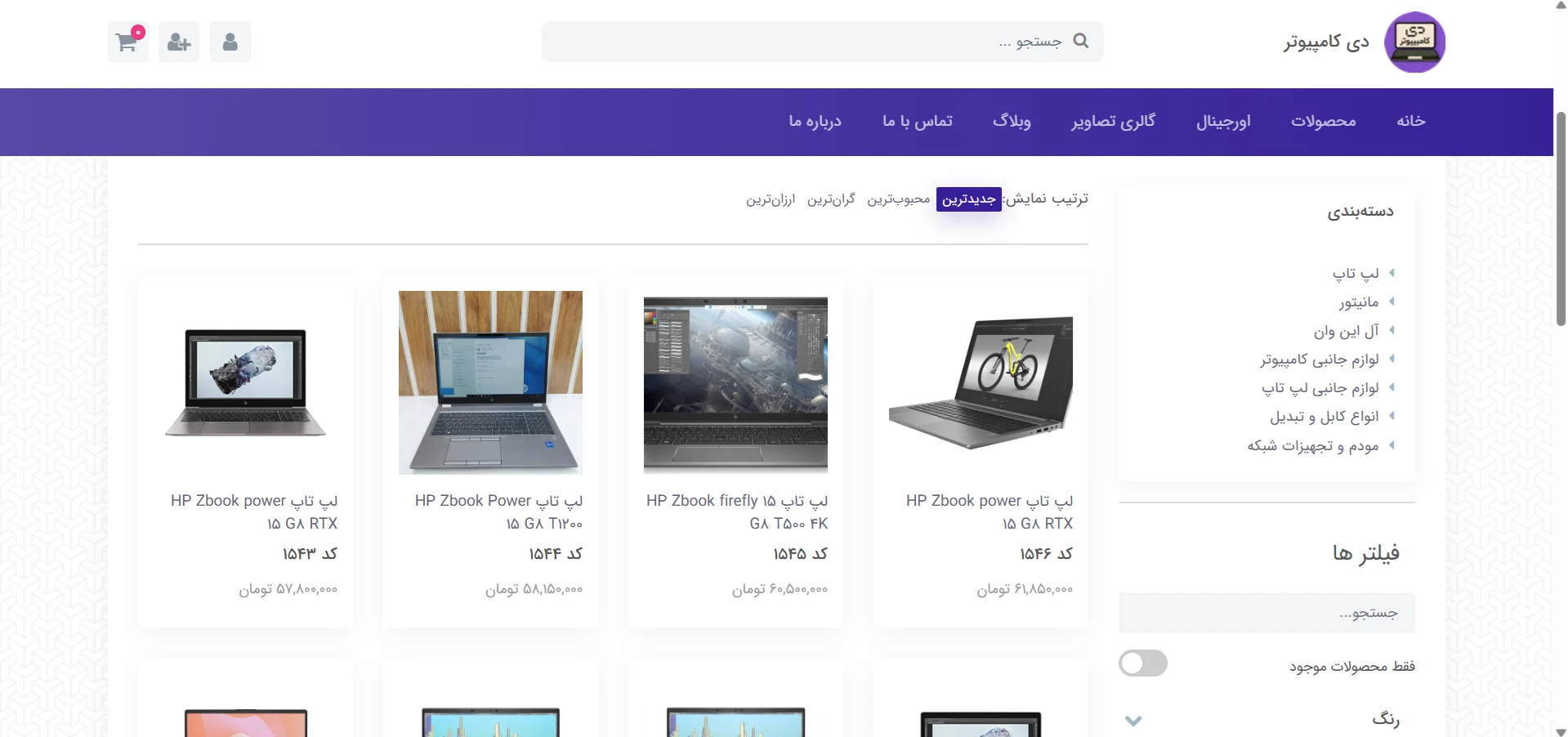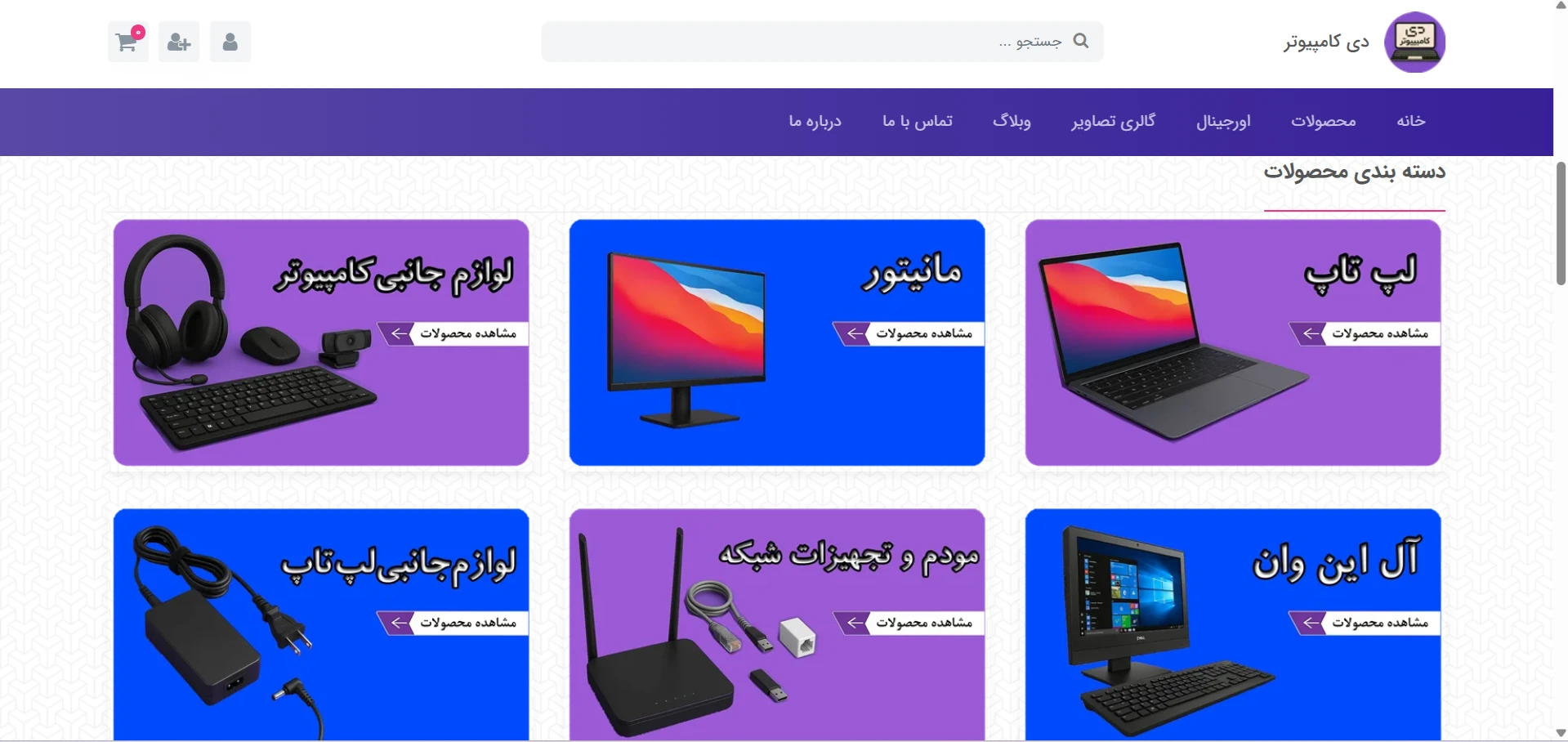 طراحی یک وب سایت فروشگاهی با نام دی کامپیوتر برای فروش لوازم کافی نتی و لپ تاپ به همراه سئو و پشتیبانی یک ساله