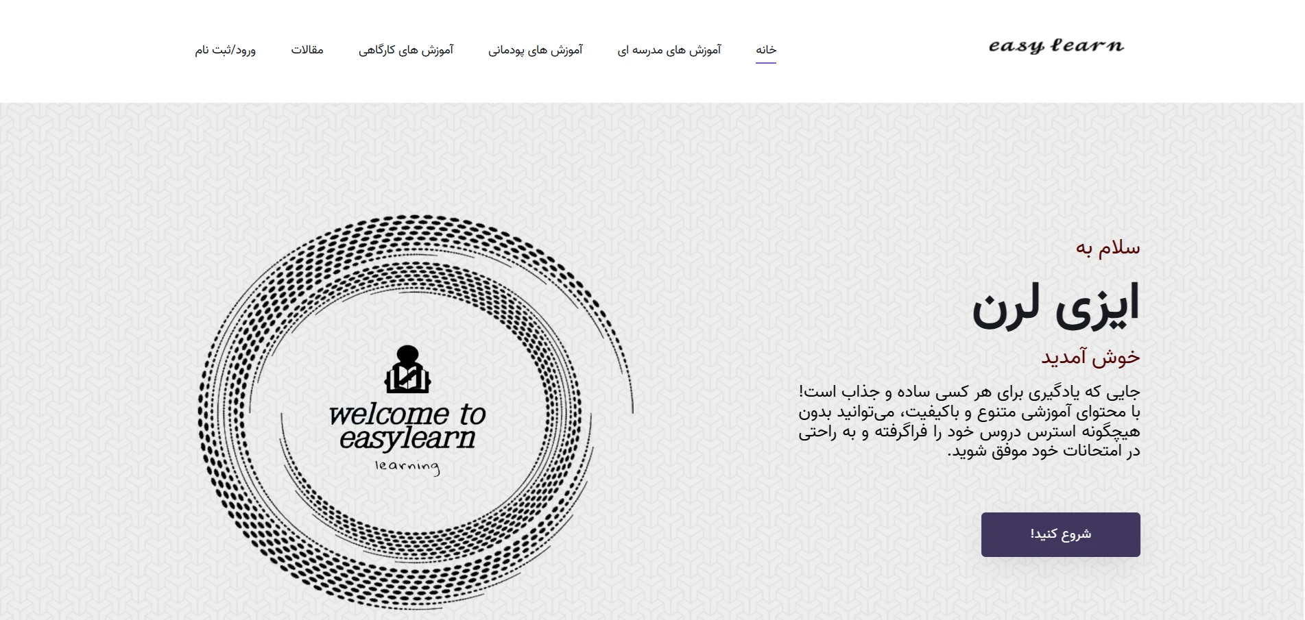 طراحی، ساخت، پشتیبانی و بروزرسانی وب سایت علمی آموزشی ایزی لرن به مدت 2 ماه به طوری که بعد از 2 سال هنوز درحال بروزرسانی و تکمیل است.
