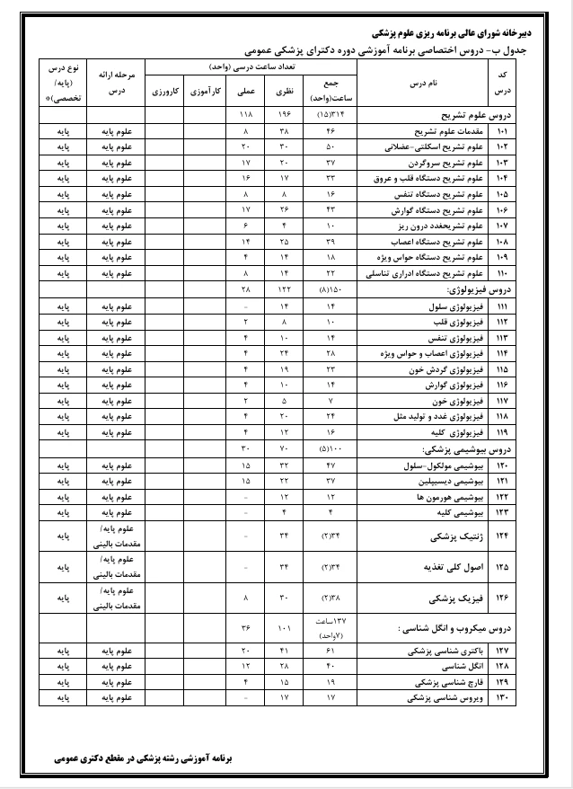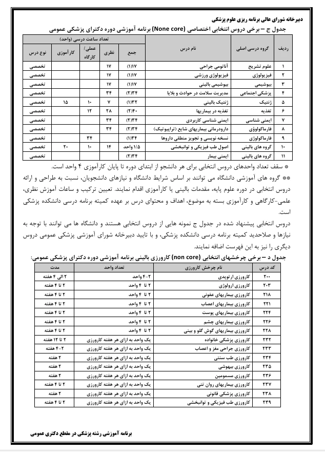 نمونه تایپ شده برنامه آموزشی رشته پزشکی در مقطع دکتری عمومی(قبل و بعد)