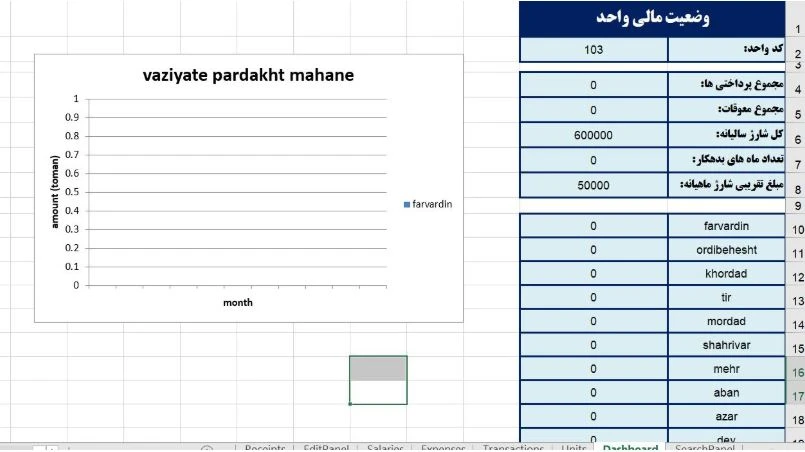 اطلاعات و گزارشات مربوط به مالک یا مستاجر و پرداختی و گردش مالی مجتمع اعم از هزینه های مجتمع و تقسیم بین واحدها و نحوه عملکرد هر واحد در پرداختی و معوقات قابلیت رصد دارد. و همچنین در صورت نیاز قابلیت ارتقا فایل وجود دارد.