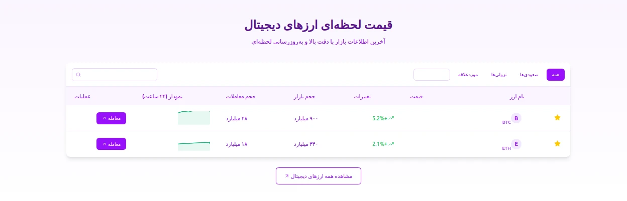 صفحات داینامیک برای مشاهده جزئیات هر رمزارز