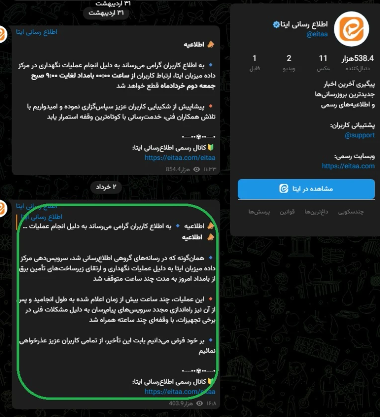 دریافت آخرین پیام کانالهای ایتا بهصورت خودکار