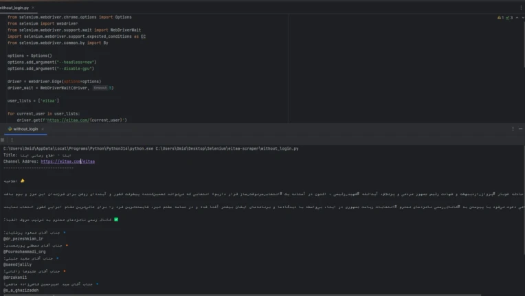 این برنامه با استفاده از Selenium و مرورگر Edge به صورت headless (بدون باز شدن پنجره مرورگر) صفحه کانالهای مشخص شده در لیست user_lists را باز میکند.