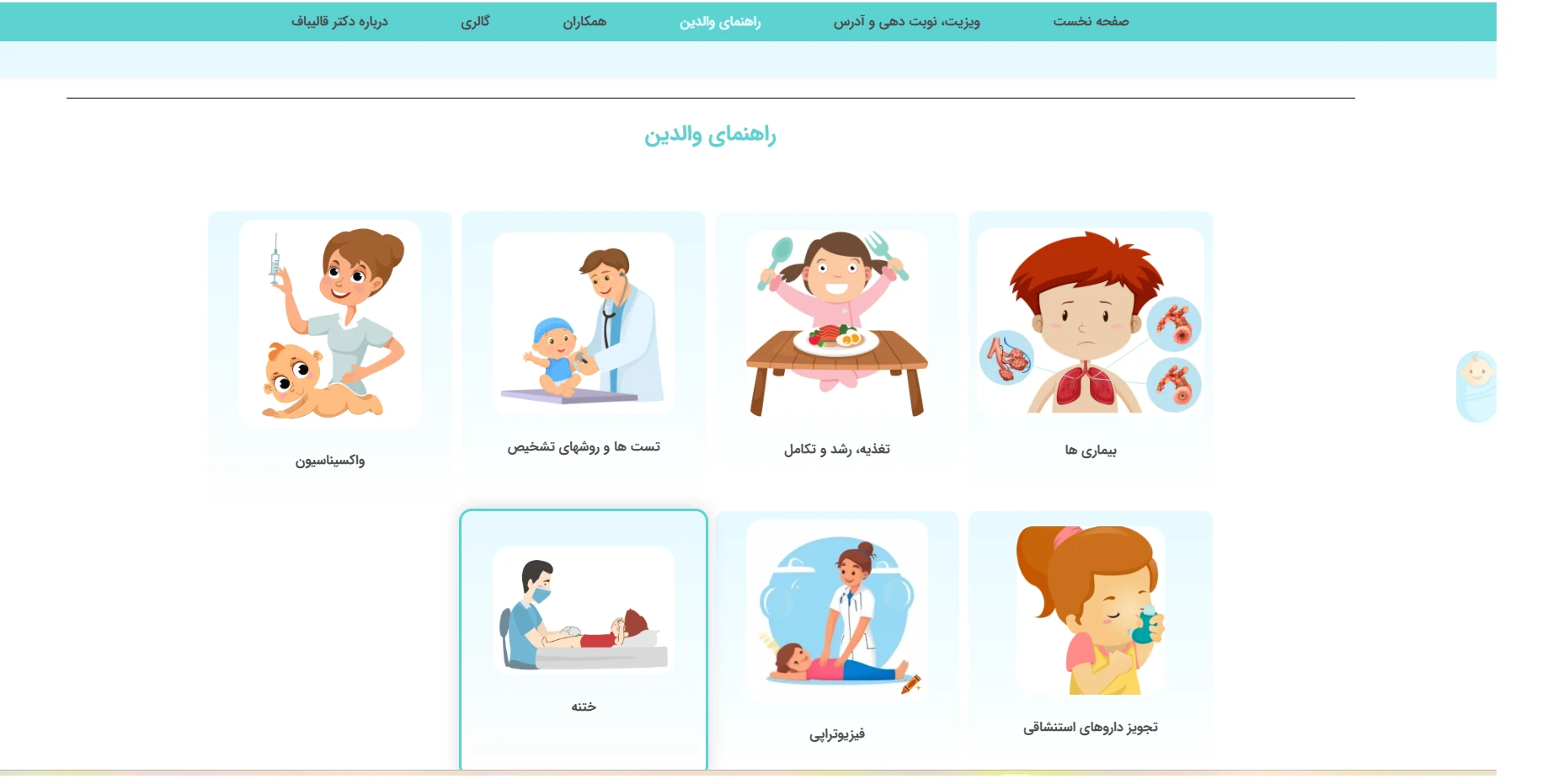 این سایت برای پزشک کودکان به صورت اختصاصی از صفر با المنتور طراحی شده و برای راهنمایی والدین استفاده میشود.
