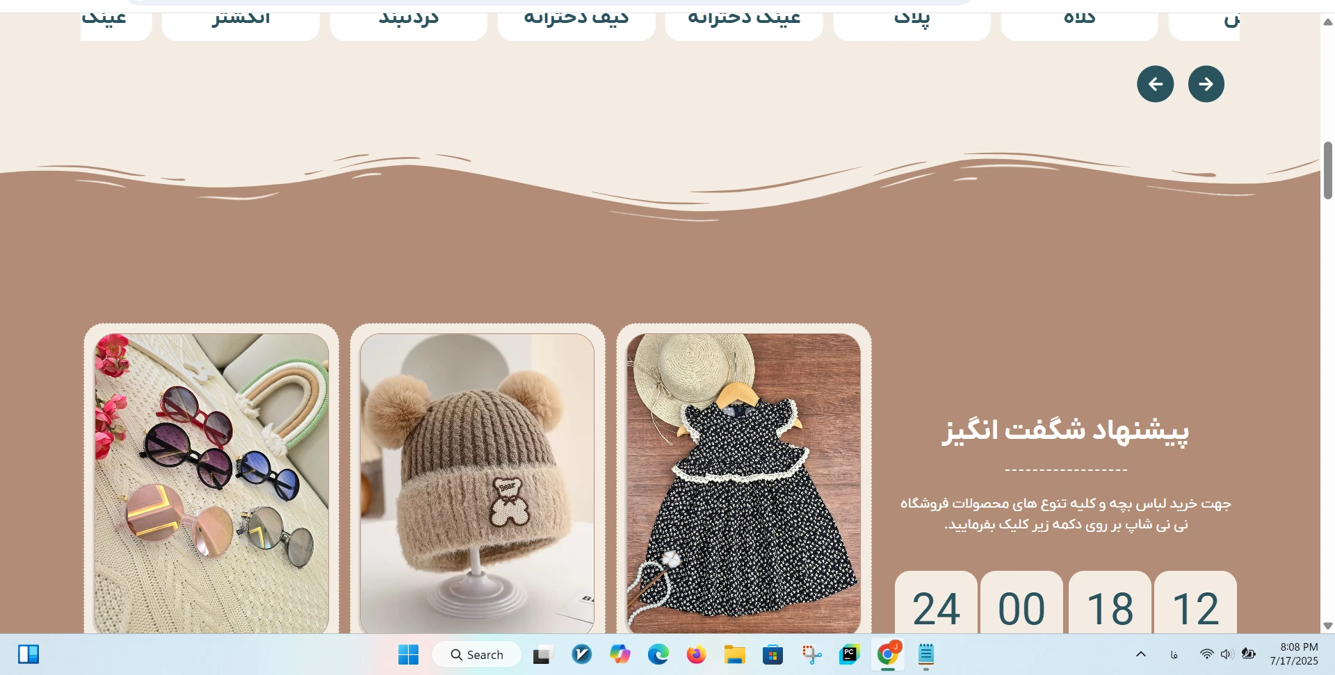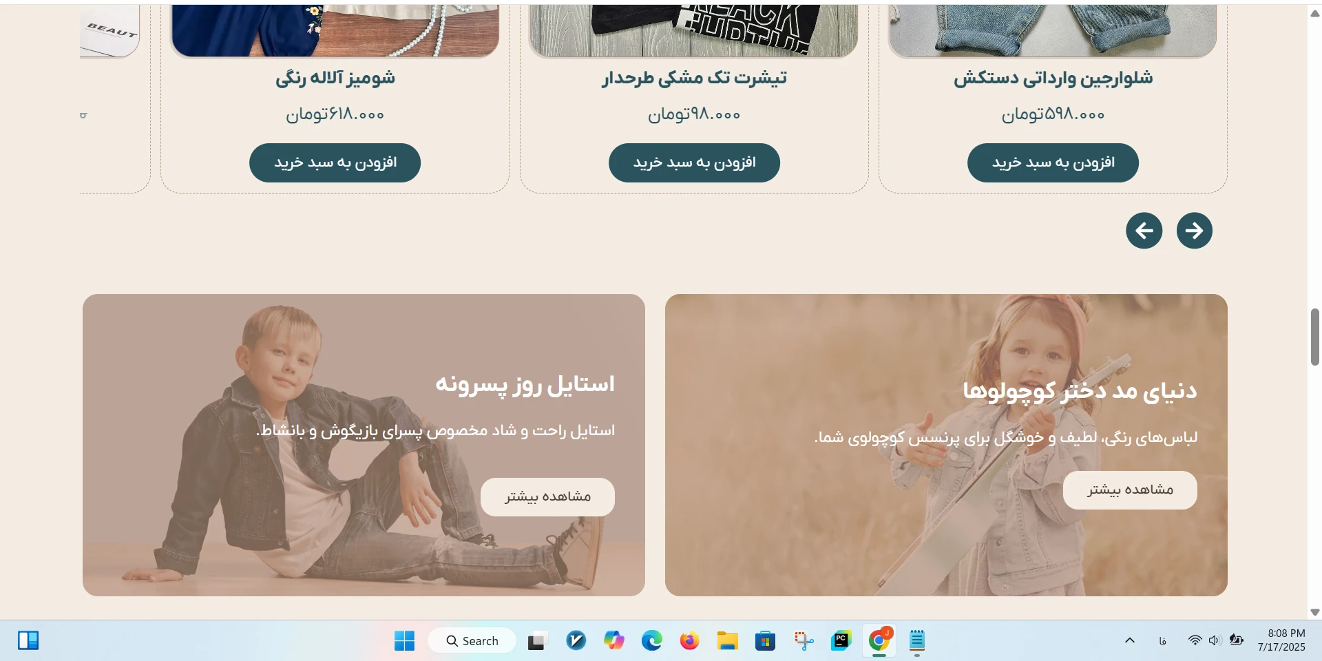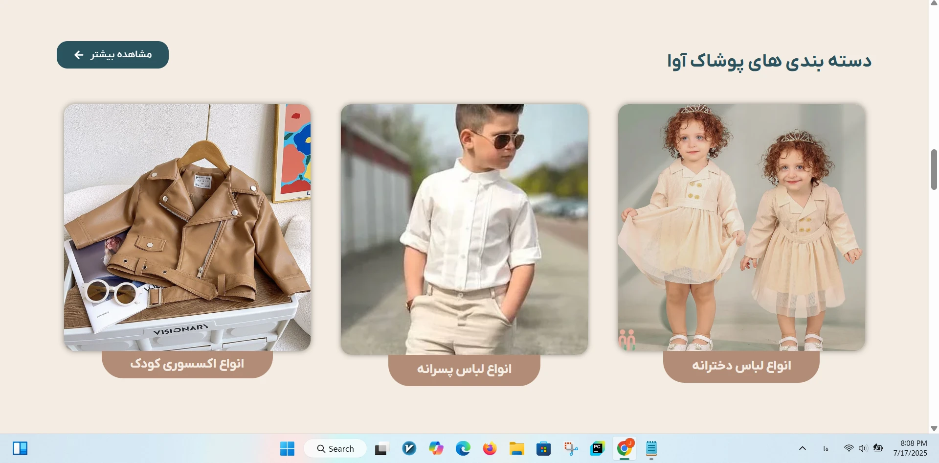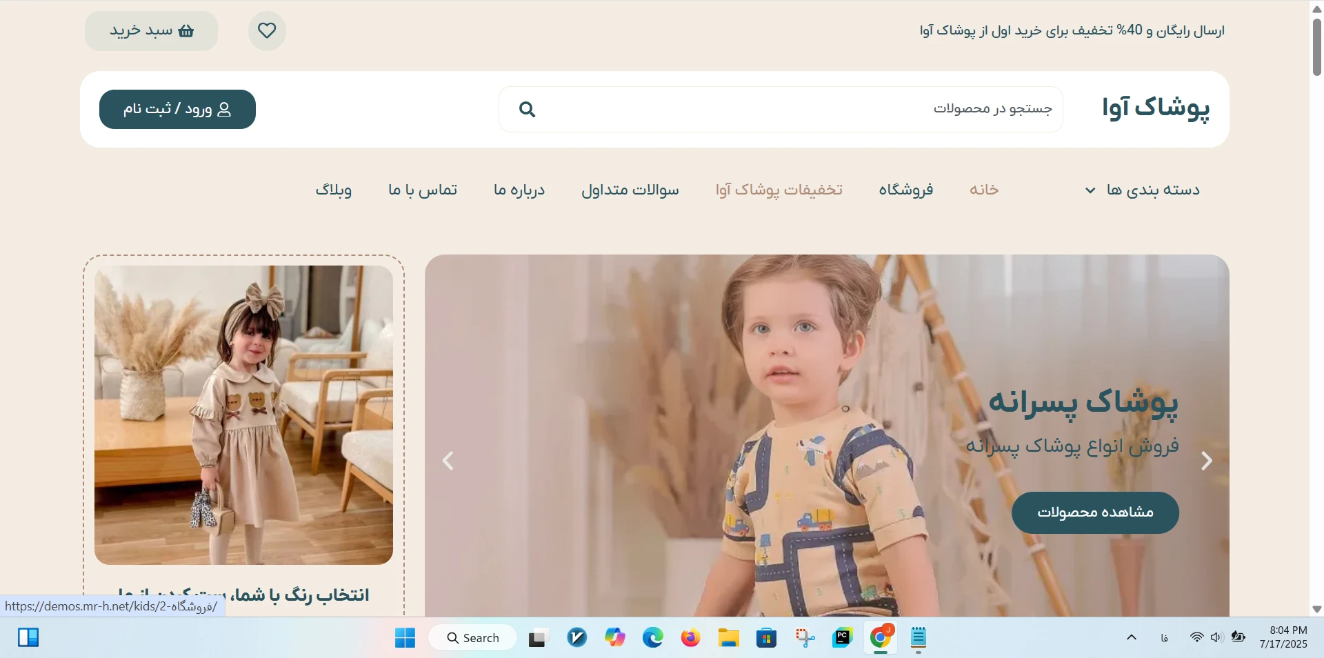 سایت طراحی شده از پایه پوشاک بچه گانه با وردپرس و ووکامرس و کد نویسی اختصاصی