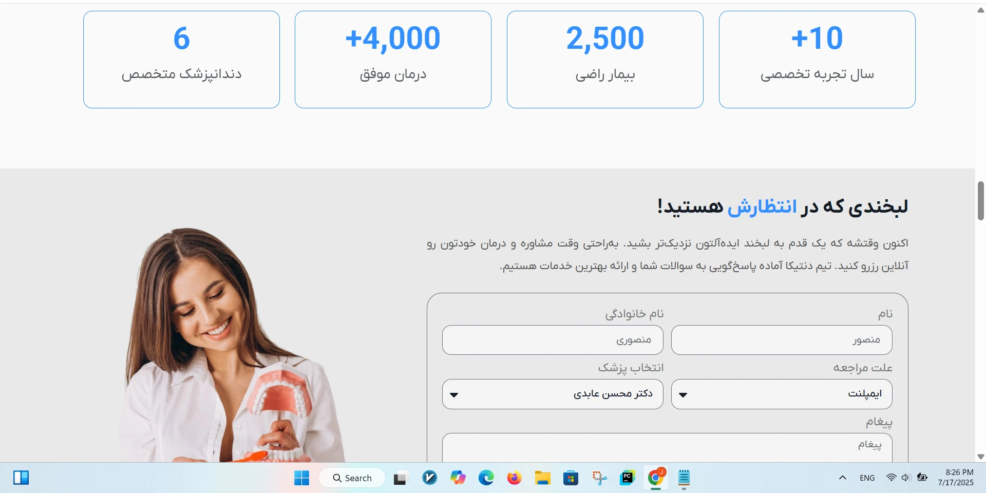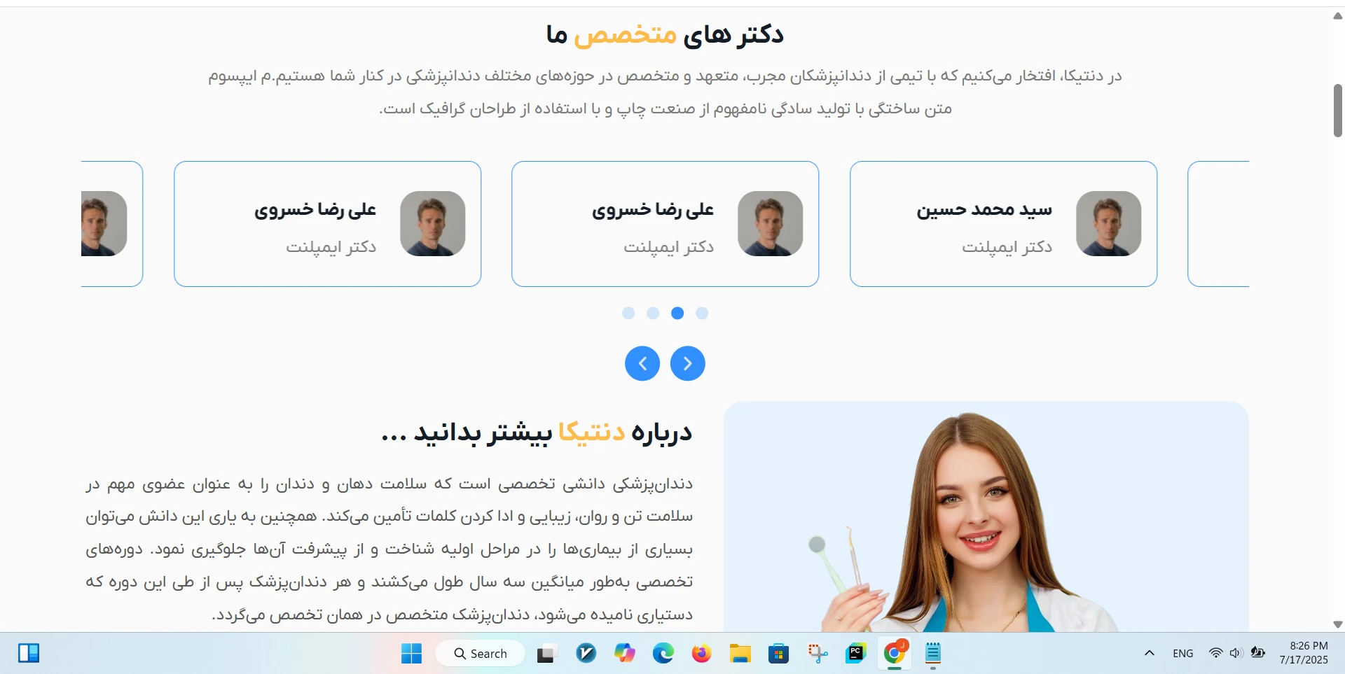 طراحی سایت پزشکی دندانپزشکی طراحی و ساخته شده از پایه