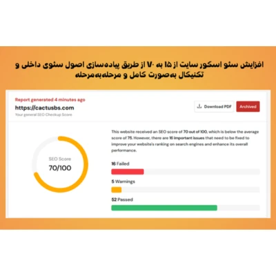 طراحی و بهینه سازی ساختار داخلی صفحات شامل منوی اصلی، سایدبار و دسته بندی ها / بهبود سرعت سایت از طریق رفع مشکلات مربوط به Core Web Vital / رفع ارورهای 4XX و ارور امنیتی HTTP Not Secure / ایجاد وبلاگ برای تقویت محتوا و جذب ترافیک / مشخص کردن کلمات کلیدی هدف برای هر صفحه و بهینه سازی محتوا آن / بهینه سازی ساختار URL ها و لینک سازی داخلی / تعریف و پیاده سازی فایل های ضروری sitemap.xml و robots.txt