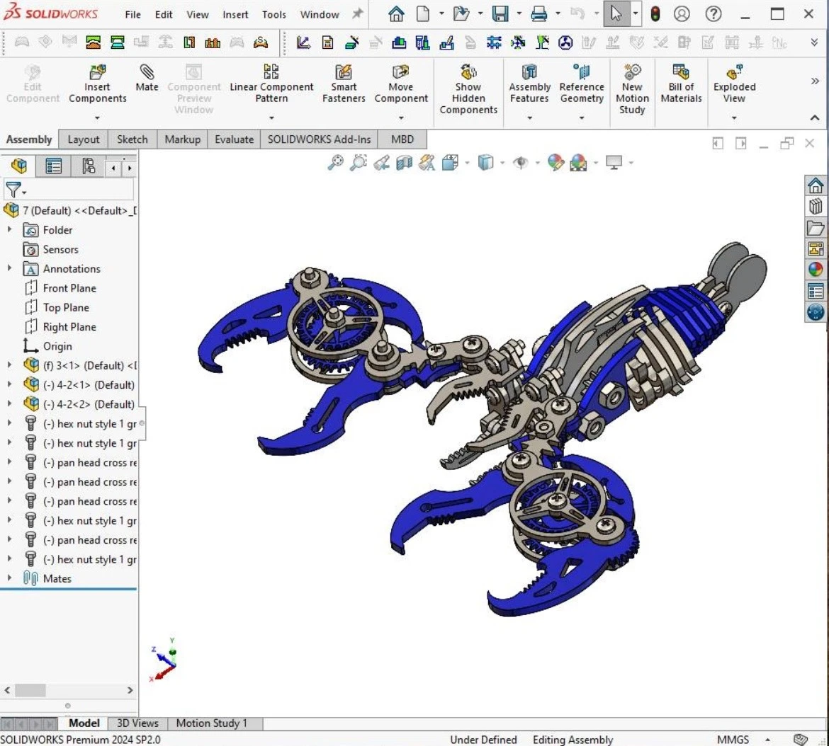 طراحی یک ربات جنگنده به شکل عقرب که برای ساخت آماده شده بود و این ربات از جنس استیل میباشد.
