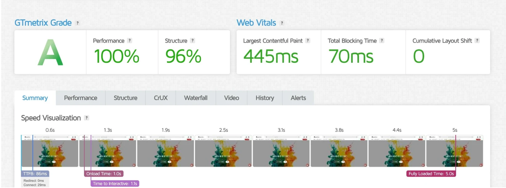 ۳. رسیدن به بالاترین سطح سرعت وب سایت از نظر معتبر ترین منبع ( گوگل ) و GT metrix