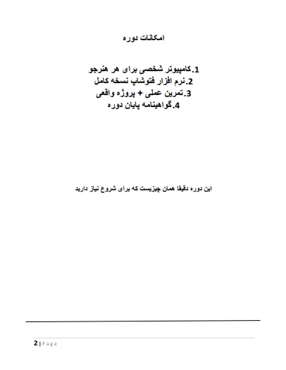 این بروشور به عنوان یک پروژه نمونه و تمرینی با استفاده از Microsoft Word طراحی شده است. موضوع بروشور، معرفی دوره های آموزش فتوشاپ در یک آموزشگاه فرضی است.