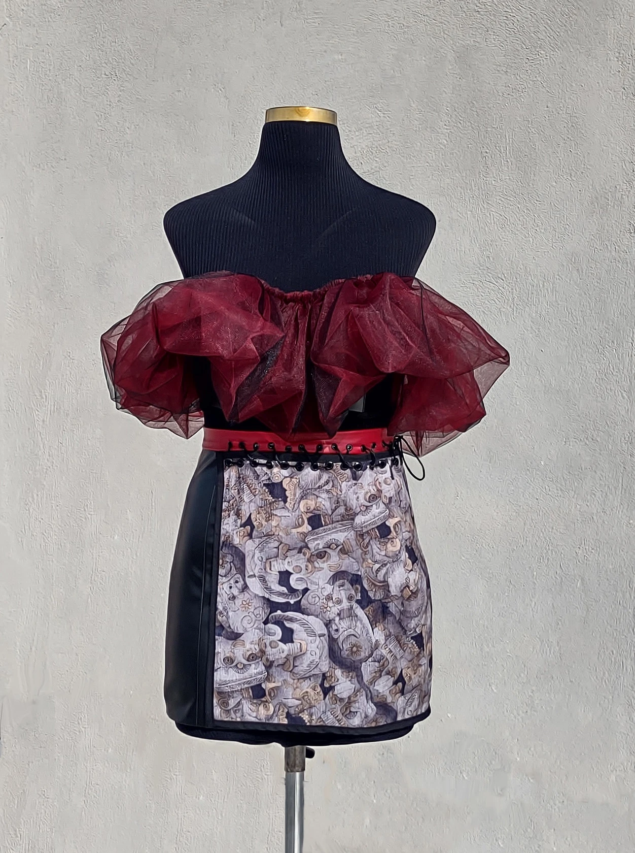 طرح پارچه الهام گرفته از مفرغ های لرستان که با هوش مصنوعی سه بعدی شده و طراحی لباس با تلفیق پارچه انجام شده