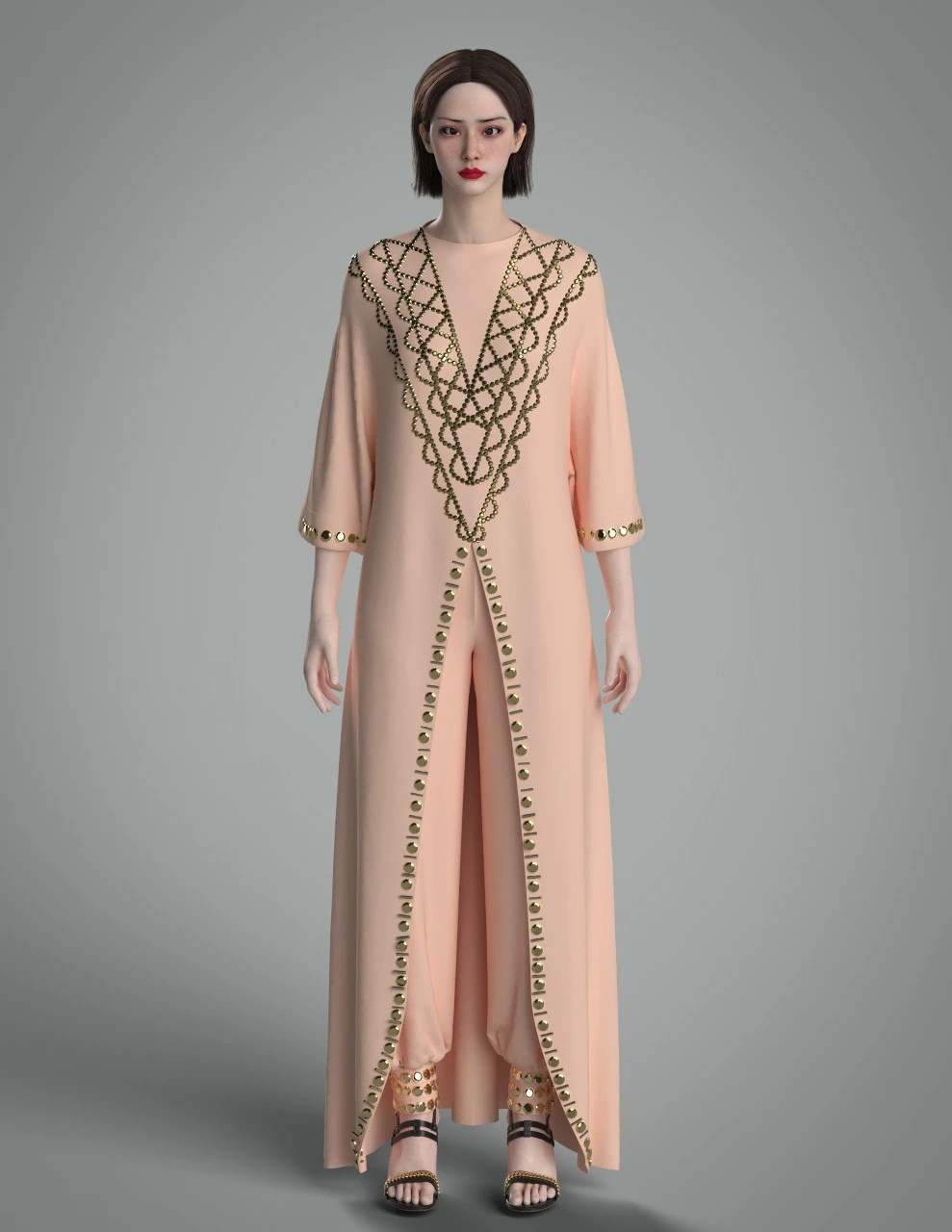 طراحی لباس و اجرای آن به صورت سه بعدی با نرم افزار clo و نمونه ی عبا که طراحی با استفاده از هوشمصنوعی هست
