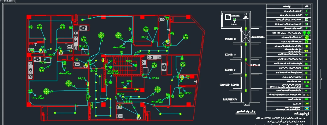 طراحی سیستم نیرورسانی ساختمان مسکونی سه طبقه نه واحد با زیر زمین انباری