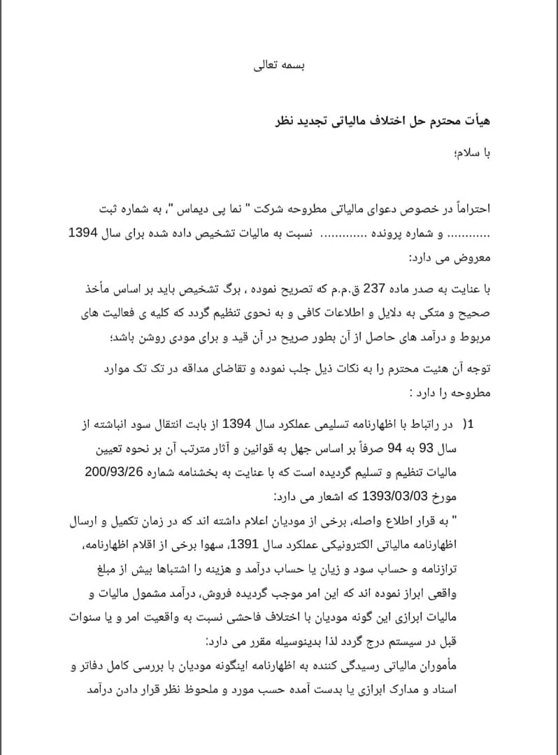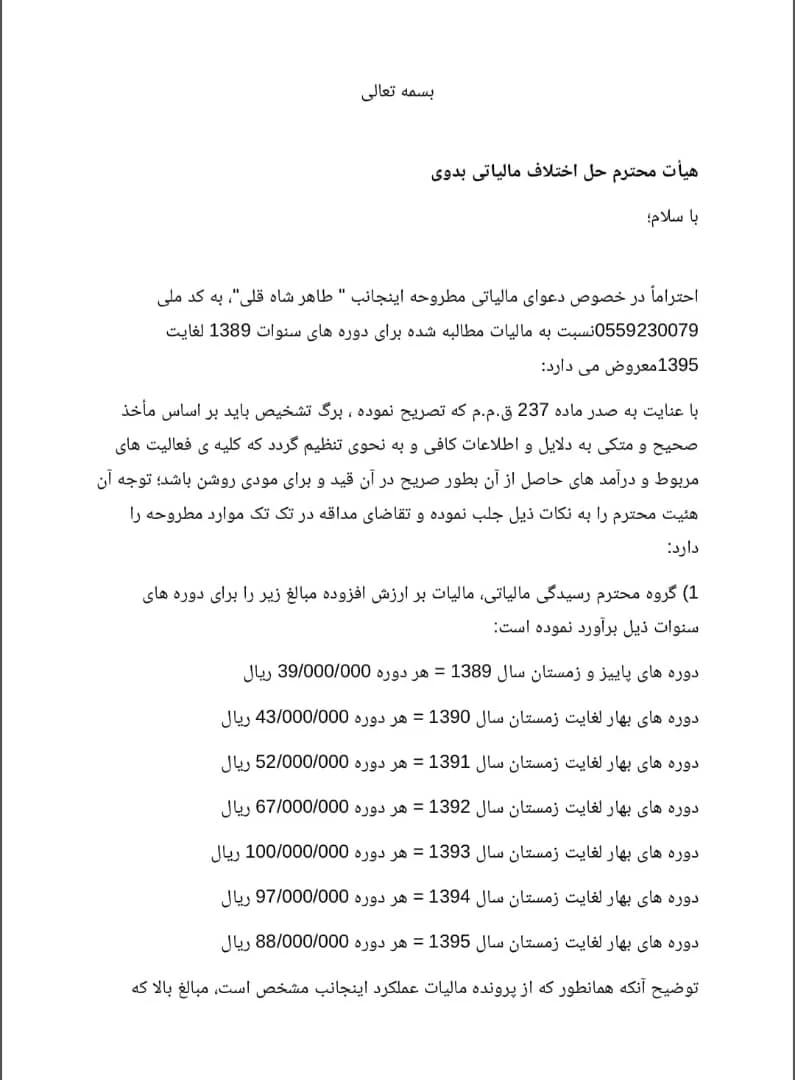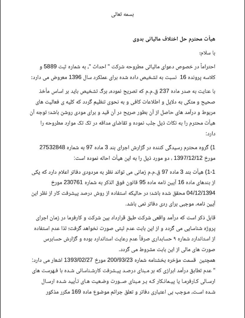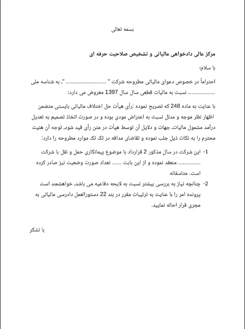 مشاوره مالیاتی و تهیه لایحه دفاعی مالیاتی