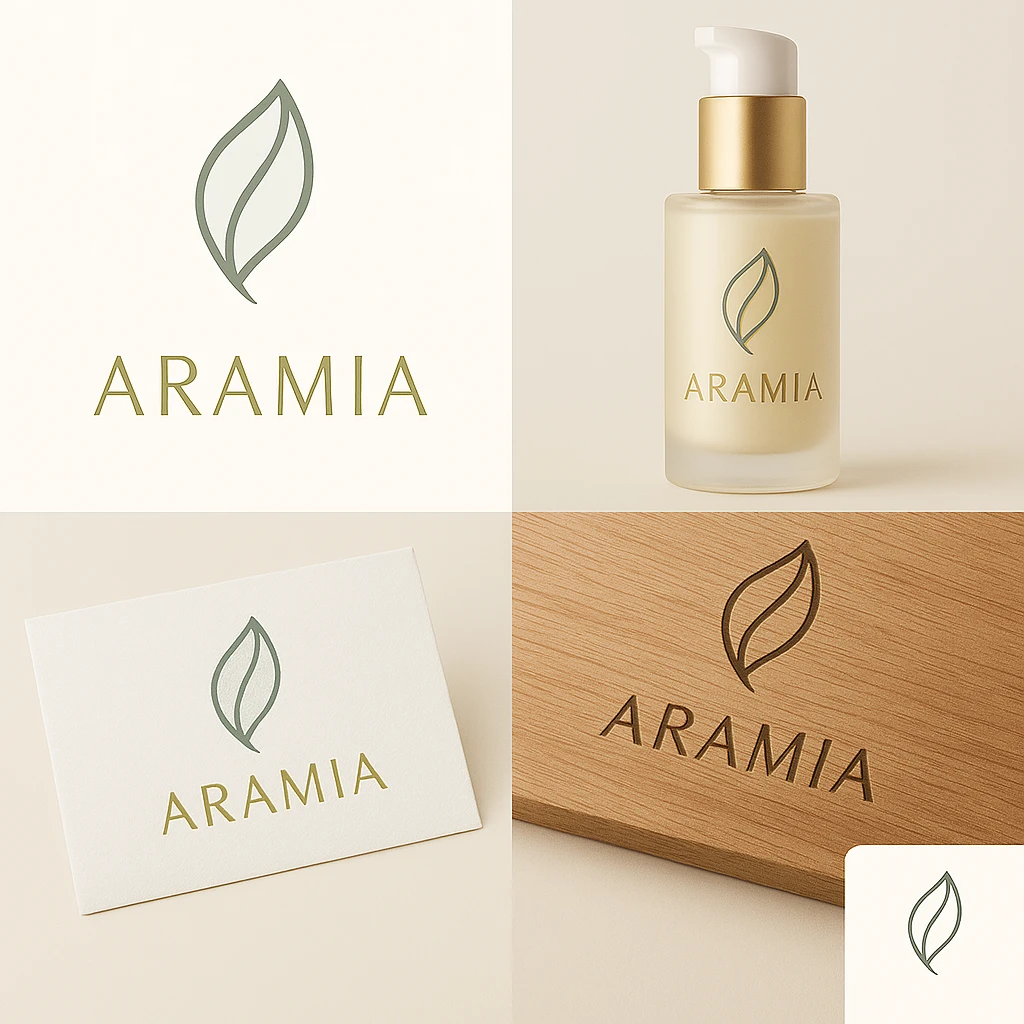 این طراحی با الهام از طبیعت و زیبایی، یک برگ انتزاعی ظریف رو با تایپوگرافی نازک و الگانت ترکیب کرده تا حس خلوص، آرامش و کیفیت بالا رو منتقل کنه. رنگ سبز خاکستری و طلایی مات روی زمینه سفید، جلوهای لوکس و مدرن به برند داده