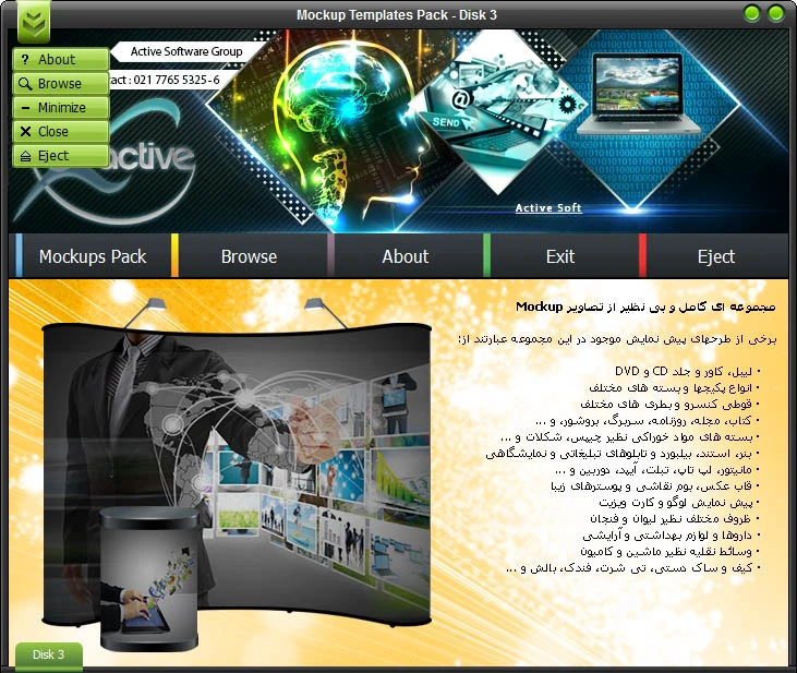 این آتوران به سفارش شرکت اکتیو برای عرضه نرم افزارهای کاربردی توسط نرم افزار Autoplay Media Studio تهیه شده است. این آتوران قابل اجرا بدون کوچکترین مشکل بر روی تمام ویندوزها تا به امروز (ویندوز 11) را دارد و برای اجرا نیاز به هیچ دسترسی خاصی (ادمین) ندارد. محیط ساده و در عین حال شیک و زیبا از ویژگیهای این آتوران است.