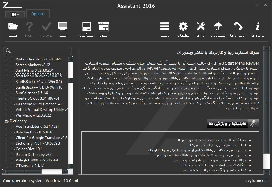 این آتوران به سفارش شرکت زیتون برای مجموعههای نرمافزاری توسط زبان برنامه نویسی سی شارپ تهیه شده است. این آتوران قابلیت اجرا بدون کوچکترین مشکل بر روی تمام ویندوزها تا به امروز (ویندوز 11) را دارد و برای اجرا نیاز به هیچ دسترسی خاصی (ادمین) ندارد. محیط کاربری با ساختار درختی، امکان معرفی نرمافزارها به آتوران توسط دستورات ساده، قابلیت نصب آسان و کرک خودکار نرمافزارها و قابلیت ساخت لیست کامل نرمافزارها و توضیحات کوتاه آنها به صورت خودکار است.