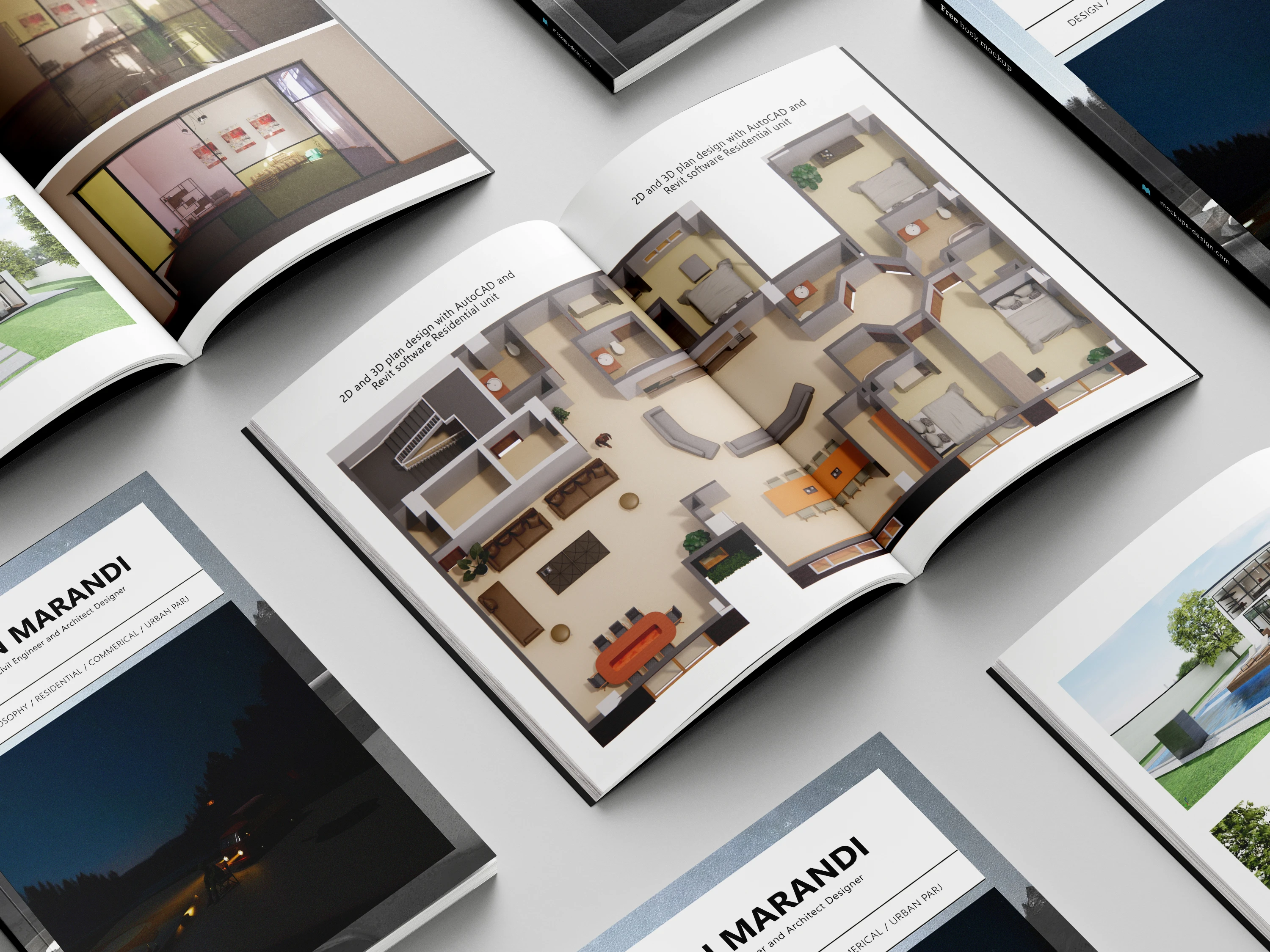 طراحی پورتفولیو معماری در حدود 69 صفحه به زبان انگلیسی با استفاده از نرم افزار های: