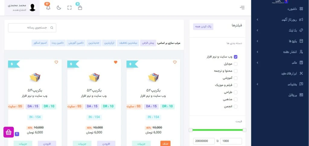 بکریپ اسکریپت حرفهای و یک پلتفرم کامل و پیشرفته برای خرید و فروش رپورتاژ آگهی و بکلینک است؛ مناسب برای راهاندازی سریع یک مارکت دیجیتال مانند تسمینو یا تریبون. این سیستم با طراحی ماژولار، پنل مدیریتی و کاربری قدرتمند، امنیت بالا و امکانات گسترده، به شما امکان میدهد تا بدون کدنویسی، کسبوکار پرسود ریپورتاژ و لینکسازی را آغاز کنید.