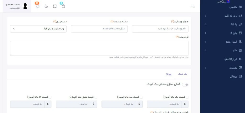 اسکریپت سایت خرید و فروش رپورتاژ وبک لینک بکریپ