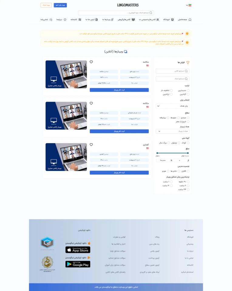 در این پروژه سنگین آموزش انواع زبان های روز دنیا با تخصص اساتید در سایت گذاشته شده و زبان آموز می تواند هم کتاب هم استاد زبان مورد نظر خود را انتخاب و به صورت حضوری یا آنلاین یا در خانه و ... آموزش ببیند و امکانات زیاد دیگری نیز در این سایت هست