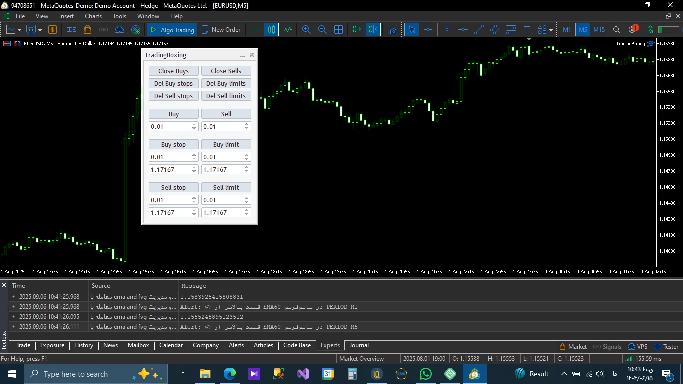 این پنل کاربری با رابط گرافیکی کامل، امکان باز و بسته کردن معاملات، مدیریت حجم، تعیین حد ضرر و سود، تریلینگاستاپ، بریکایون و نمایش وضعیت حساب را فراهم میکند. طراحی شده برای افزایش سرعت و دقت تریدر در شرایط واقعی بازار.