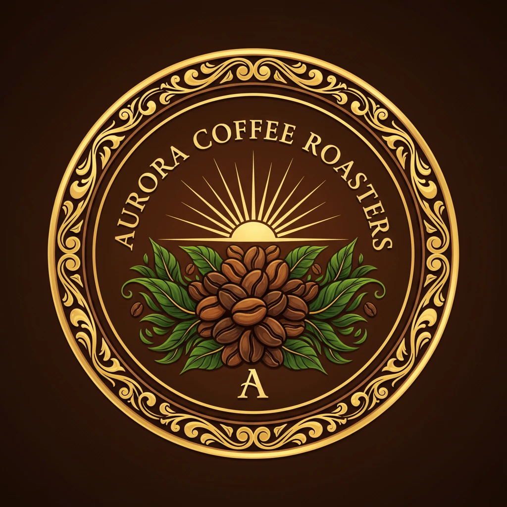 این لوگوی نشانی برای برند فرضی Aurora Coffee Roasters طراحی شده است که تمرکز آن بر رُست و فروش قهوههای ویژه و باکیفیت است و از عناصر هوش مصنوعی مختلف هم در طراحی آن کمک گرفته شده است .طراحی ترکیبی از عناصر سنتی و مدرن را شامل میشود: دانه قهوه مرکزی، پرتوهای طلوع خورشید که نام “Aurora” را تداعی میکند، و تایپوگرافی گرد که به نشانهای کلاسیک کافهها و رستورانها شباهت دارد. رنگهای گرم و غنی (قهوهای، طلایی، سبز گیاهی) حس صمیمیت و کیفیت را منتقل میکنند.
