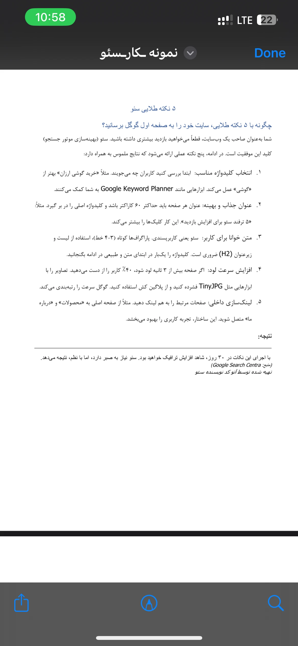 نمونه کار در رابطه با راهکار های افزایش بازدید