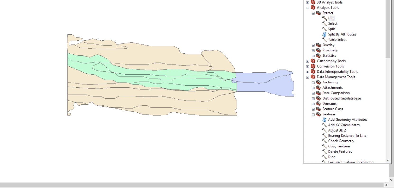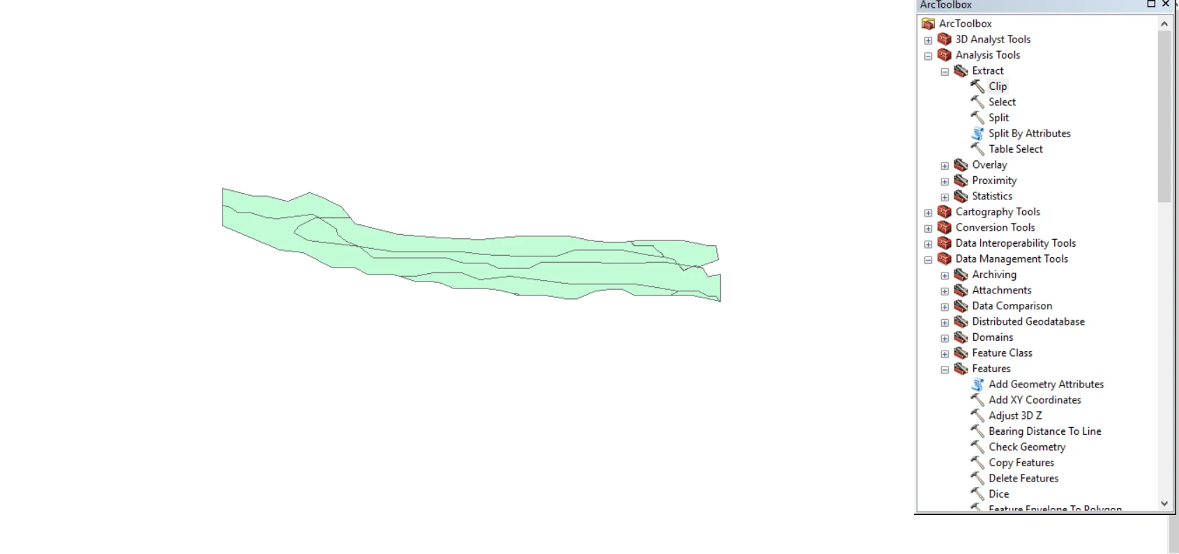 این دو ابزار باهم متفاوت است INTERSECT به کمک این گزینه می توان یک لایه خطی و نقطه ای و پلیگون را یک لایه پلیگونی برش داد و یک لایه جدید ایجاد کرد خصوصیات آن برابر هر دو لایه است در این مورد با بزار CLIP متفاوت است به عبارت دیگر دستور قطع و عوارض مختلف بر اساس لایه مرزی یک عارضه پلیگون و ایجاد یک لایه جدید و همراه با جدول اطلاعاتی هر دو لایه است