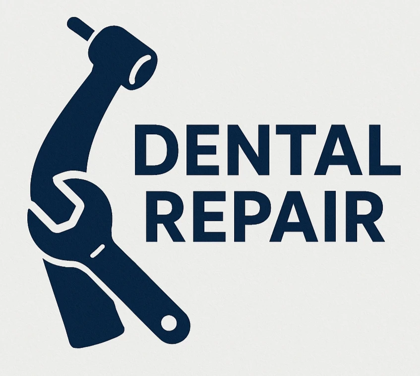 ترکیب هندپیس و آچار، نمادی از تخصص و دقت در تعمیر تجهیزات دندانپزشکی. طراحی ساده، قابلفهم و مناسب برای برندهای حوزه سلامت دهان و دندان.