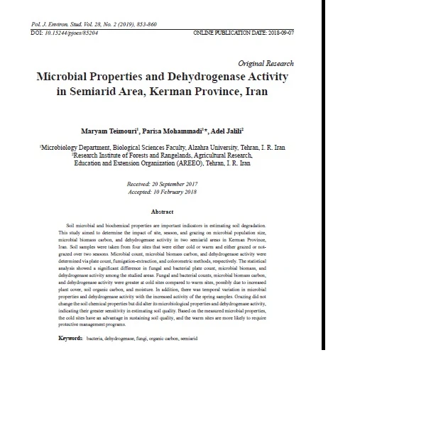 مقاله چاپ شده در مجله Polish Journal of Environmental Studies