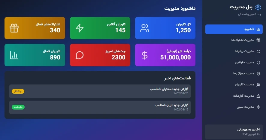 - **مدیریت سرور**: نظارت بر وضعیت سرور و سیستم