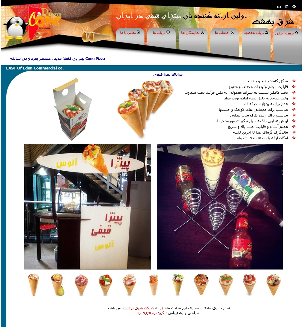 طراحی وب سایت شرکت شرق بهشت (پیتزای قیفی) ورژن 1