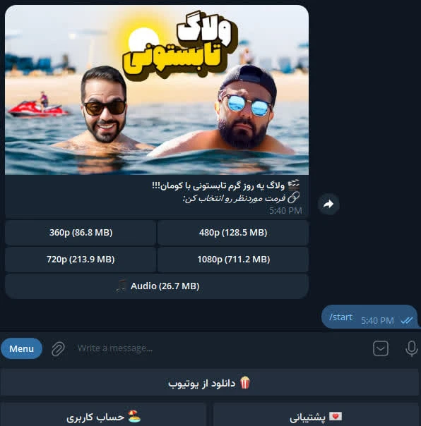 یک ربات تلگرامی کامل برای دانلود و مدیریت ویدیوها و موسیقی از YouTube ✨
