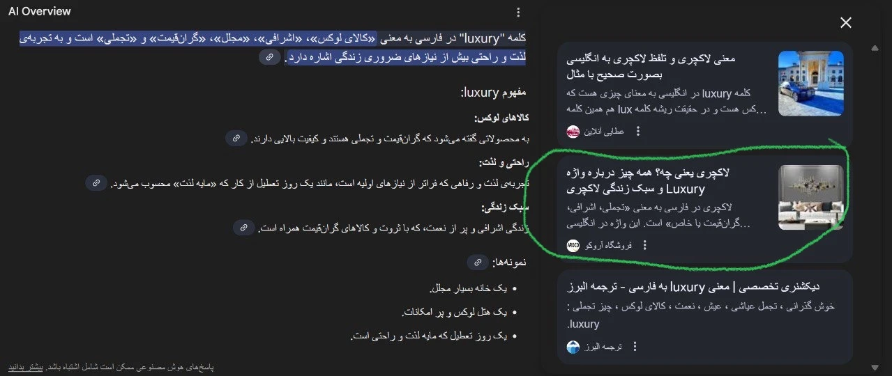 بهینه سازی مقالات و کلمات کلیدی برای دیده شدن و معرفی شدن به عنوان منبع در نتایج ai overview برای سایت اروکو
