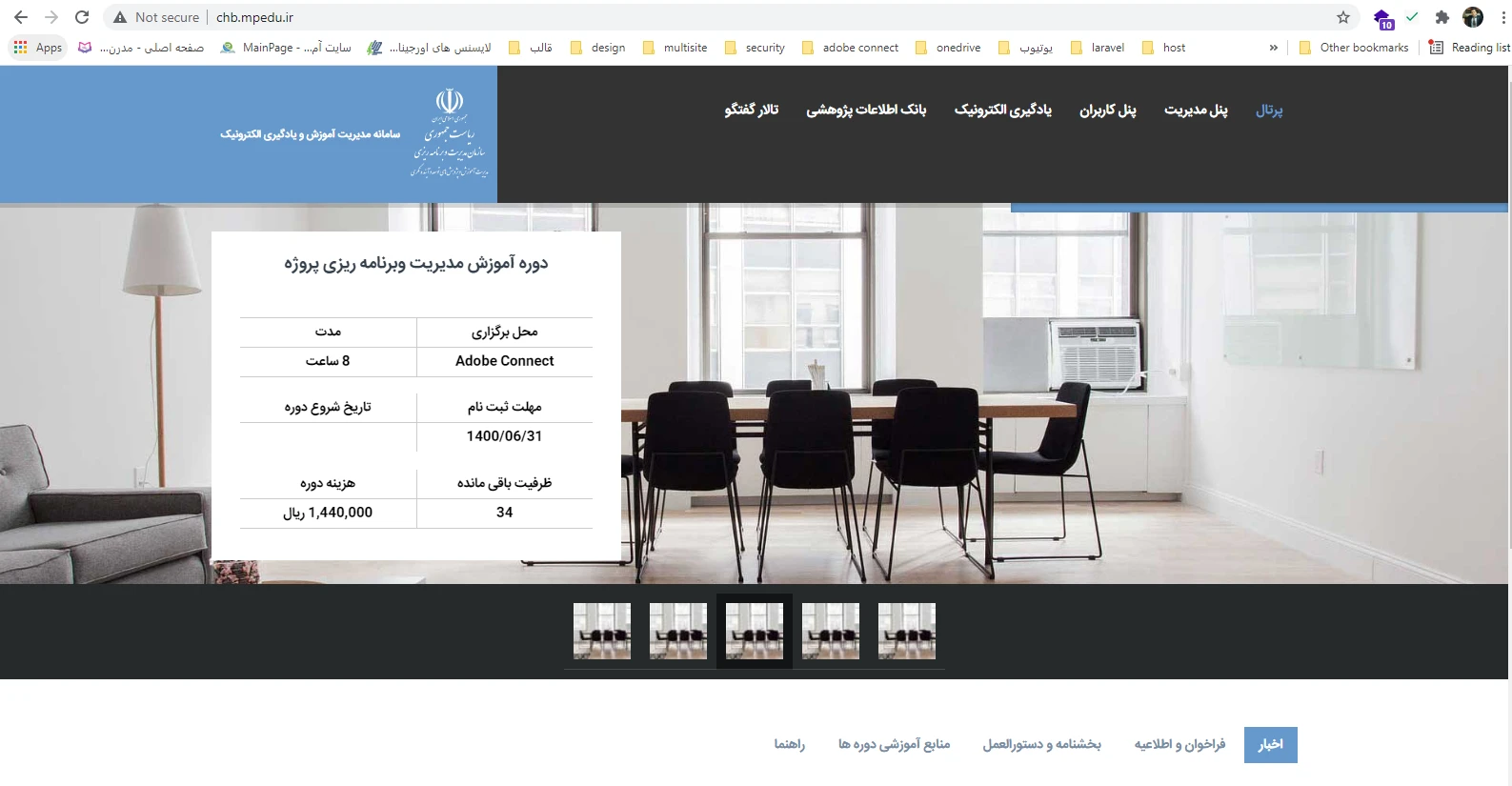 یک سیستم آموزشی آنلاین برای ادارات و سازمانهای دولتی تا کارکنان خود را آموزش دهند. در این سیستم همه موارد مدیریتی مانند حسابداری ، حضور و غیاب ، برگزاری آزمون ، پیام رسانی ، نیازسنجی آموزشی و ... وجود دارد. این سیستم دارای 4 پنل برای فراگیران ، معلمان ، دستگاه های اجرایی و مراکز آموزشی است.