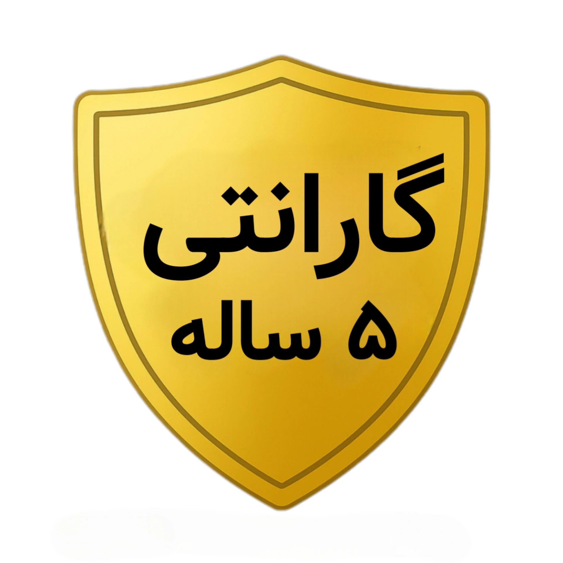 این نشان گارانتی با ترکیب رنگ طلایی و تایپوگرافی فارسی، با هدف ایجاد حس اعتماد و کیفیت طراحی شده است.