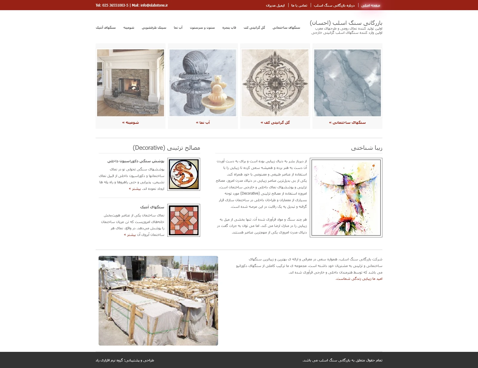 طراحی وب سایت بازرگانی سنگ اسلب با HTML و CSS در سال 1388 این وب سایت استاتیک کاملا به روش کدنویسی و از پایه نوشته شده و برای کدنویسی آن از نرم افزار Dreamweaver استفاده شده است.