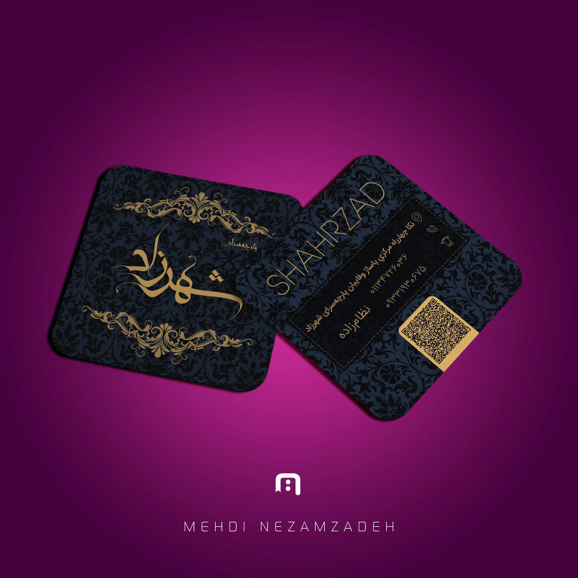 موکاپ کارت ویزیت پارچه سرای شهرزاد با طرح و رنگ بندی پارچه مجلسی کار شده توسط فتوشاپ و ایلاستریتور