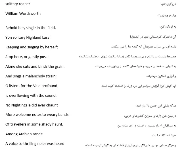 ترجمه شعر دروگر از wordsworth . زمان ترجمه : نصف روز