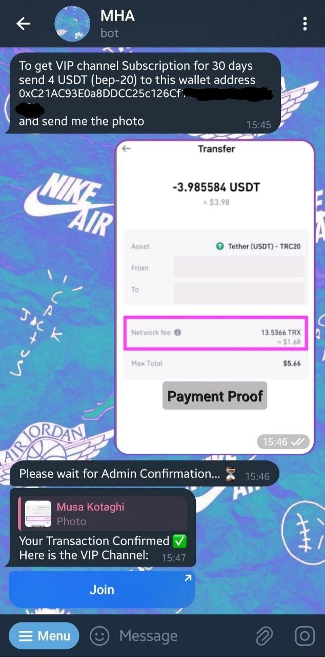 • پردازش تراکنشها 💳 : دریافت رسید پرداخت از کاربران، تایید یا رد تراکنش توسط ادمین و ارسال اعلانهای وضعیت پرداخت به صورت خودکار