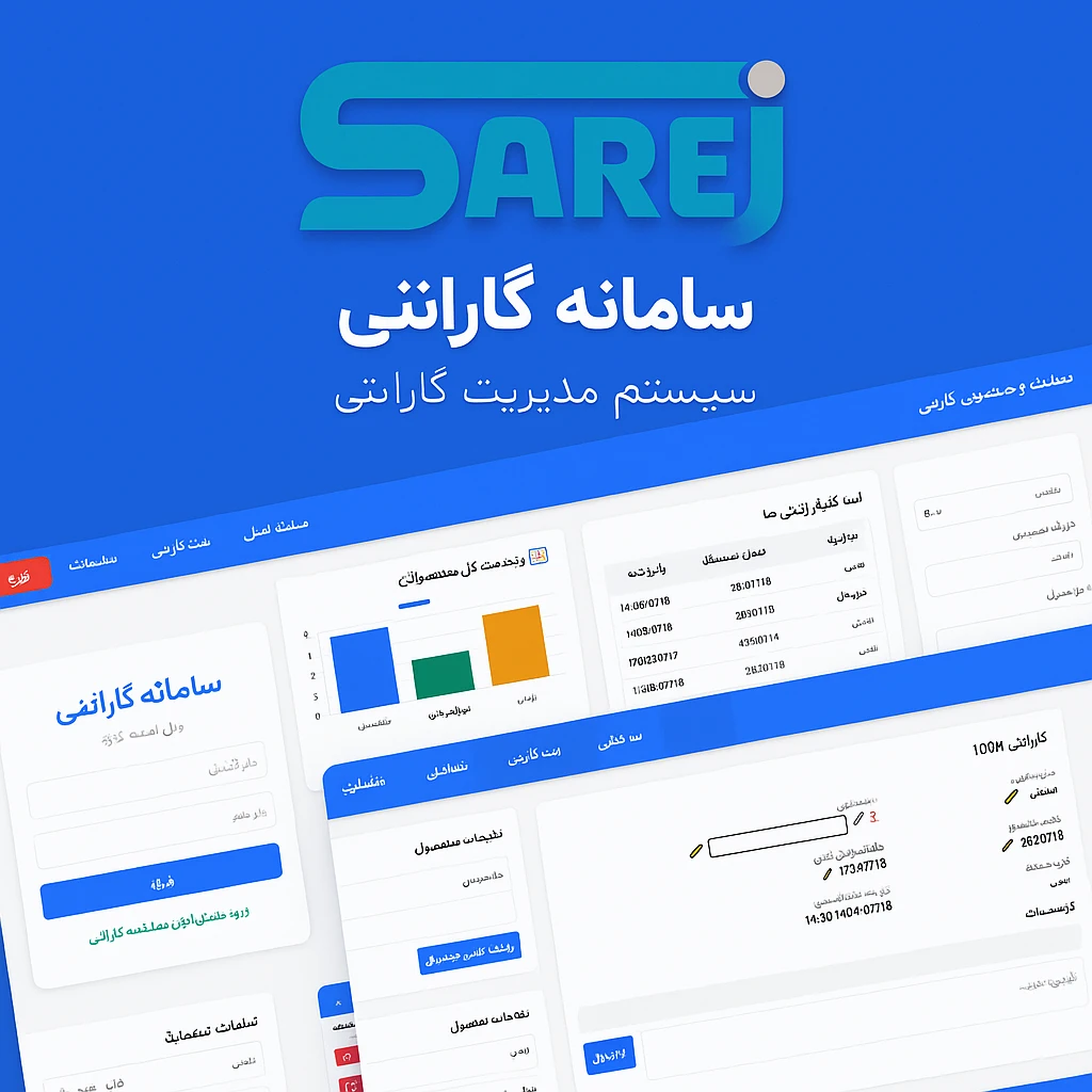 سامانه ای جهت ثبت و مدیریت گارانتی محصولات شرکت ساریژ که به کمک این وب اپلیکیشن قادر به ثبت گارانتی ها، و همچنین ثبت توضیحات (در صورت استفاده از گارانتی در تاریخ مورد نظر چه اعمالی روی آن انجام شده) هستند.