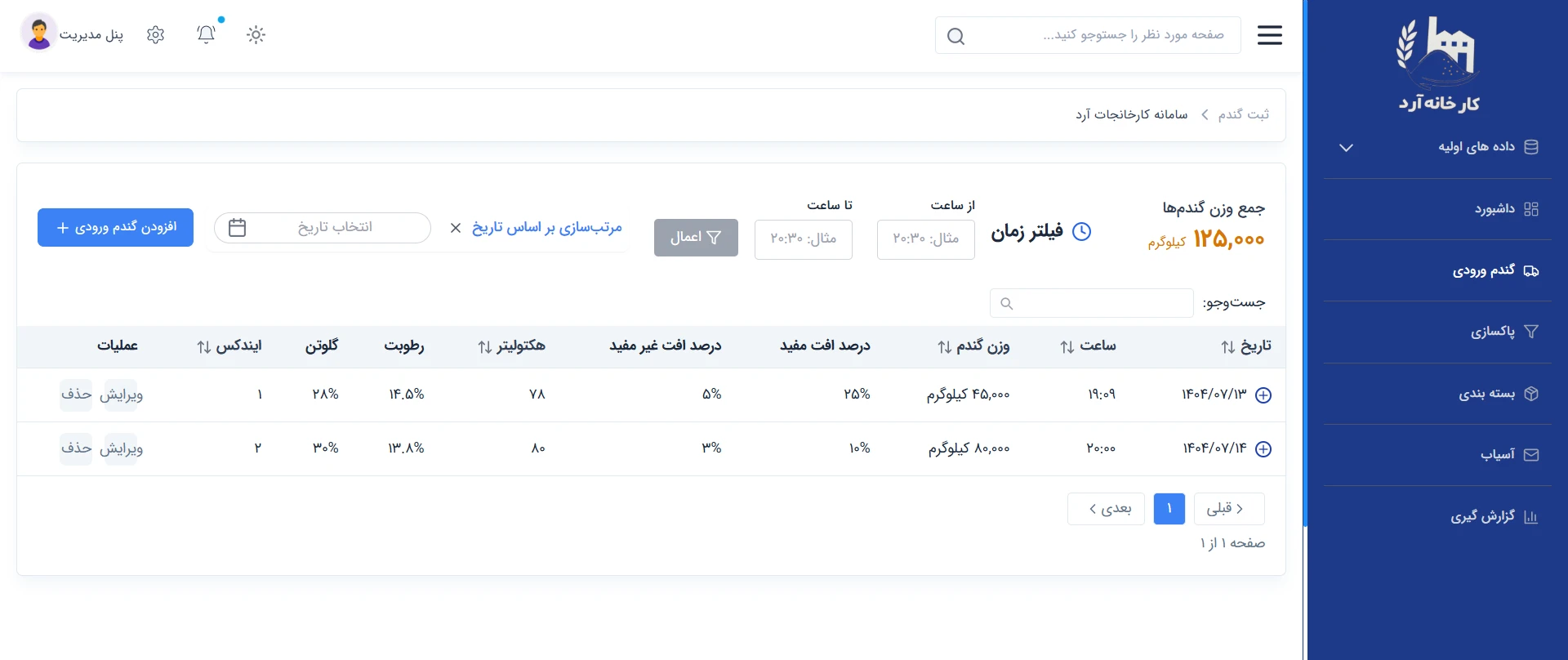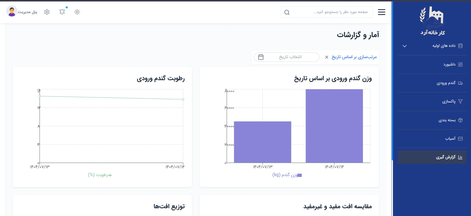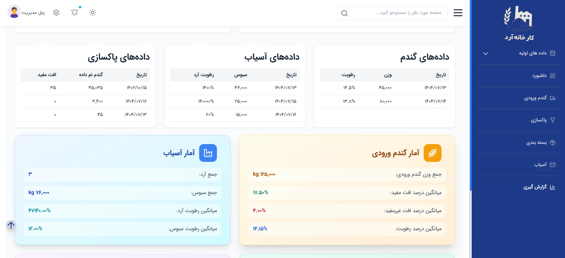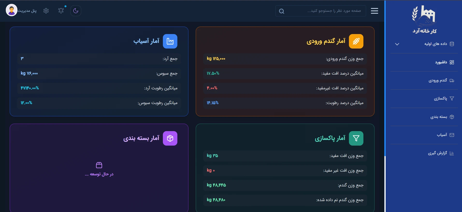 • مدیریت کامل محصولات (سهمیه ها، آرد، ، تجهیزات)