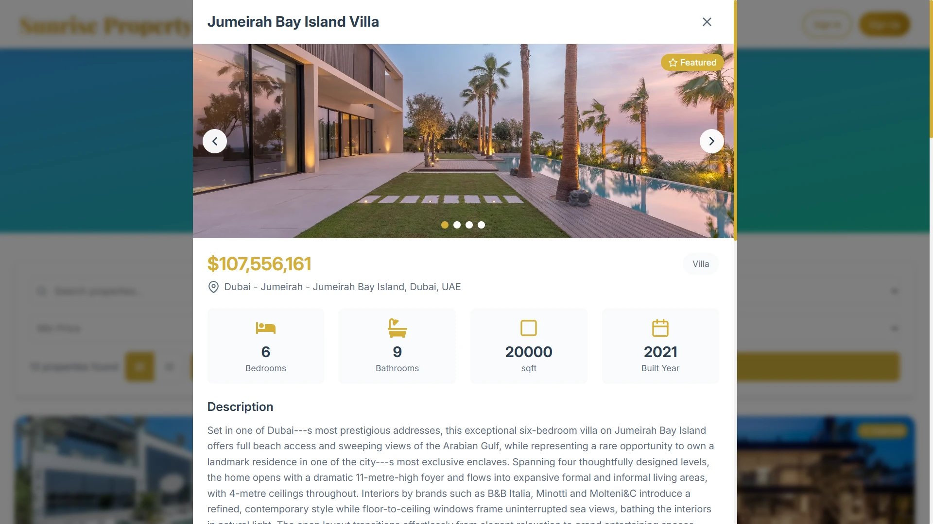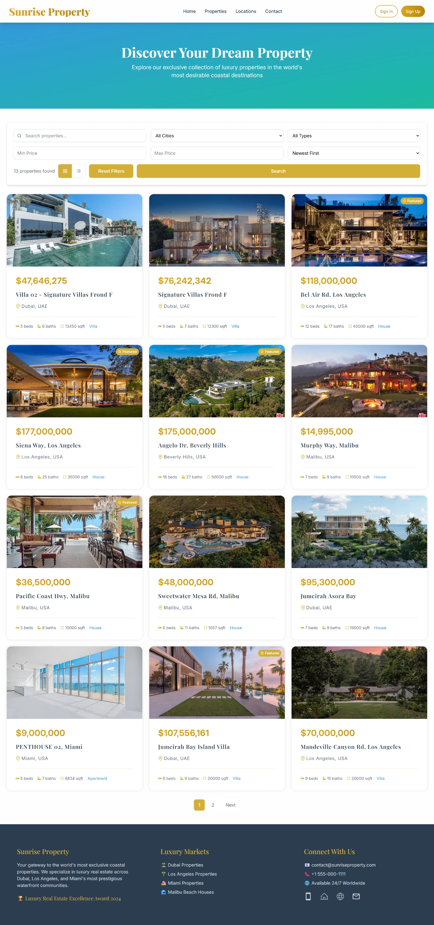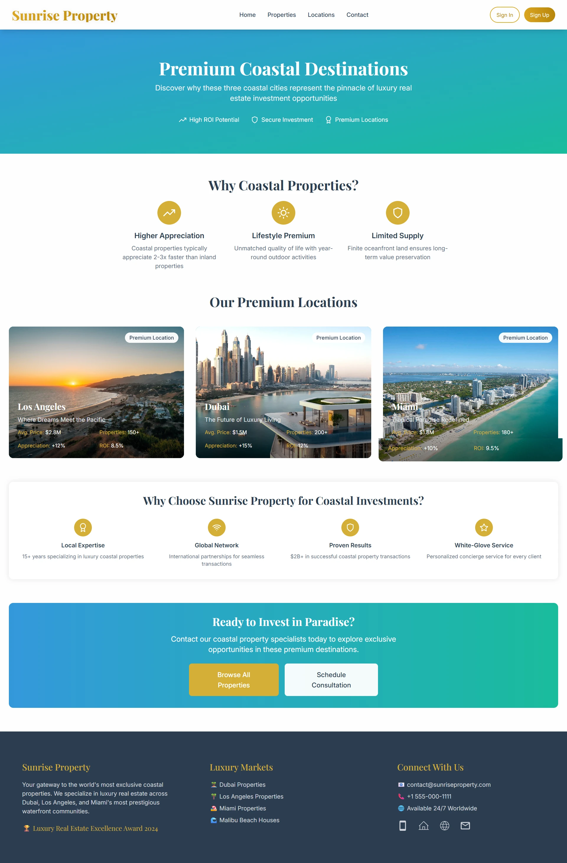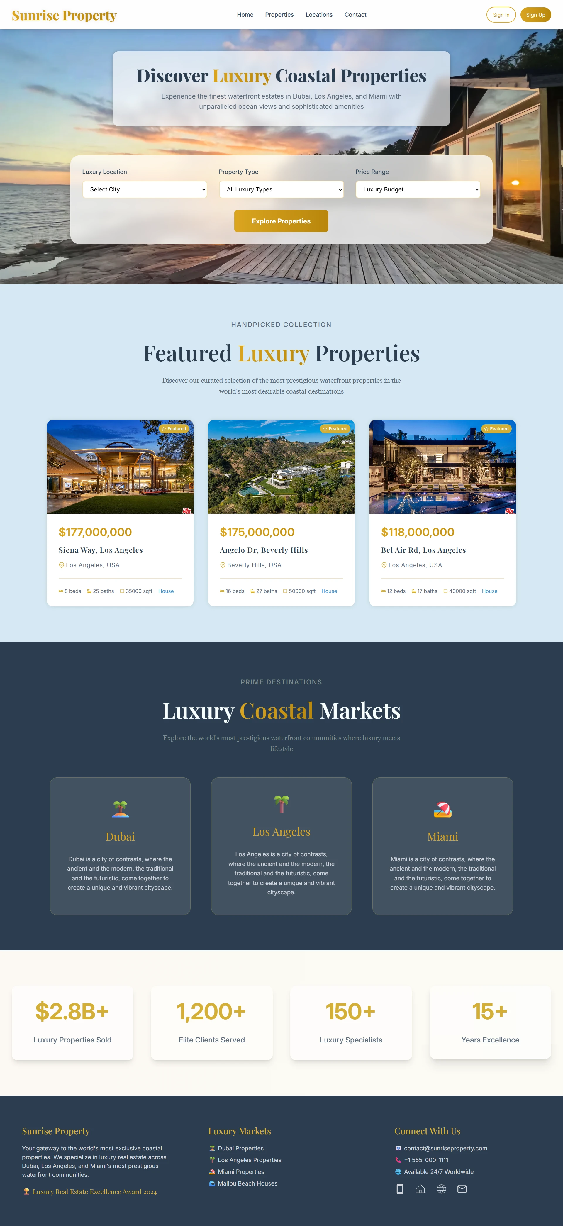 این وبسایت با هدف نمایش املاک لوکس و مدرن در شهرهای مختلف جهان ساخته شده است. در این پروژه تلاش شده تجربهای چشمنواز، روان و کاربرپسند ایجاد شود؛ با طراحی ریسپانسیو، تصاویر باکیفیت و انیمیشنهای نرم که حس مدرن را منتقل میکنند.