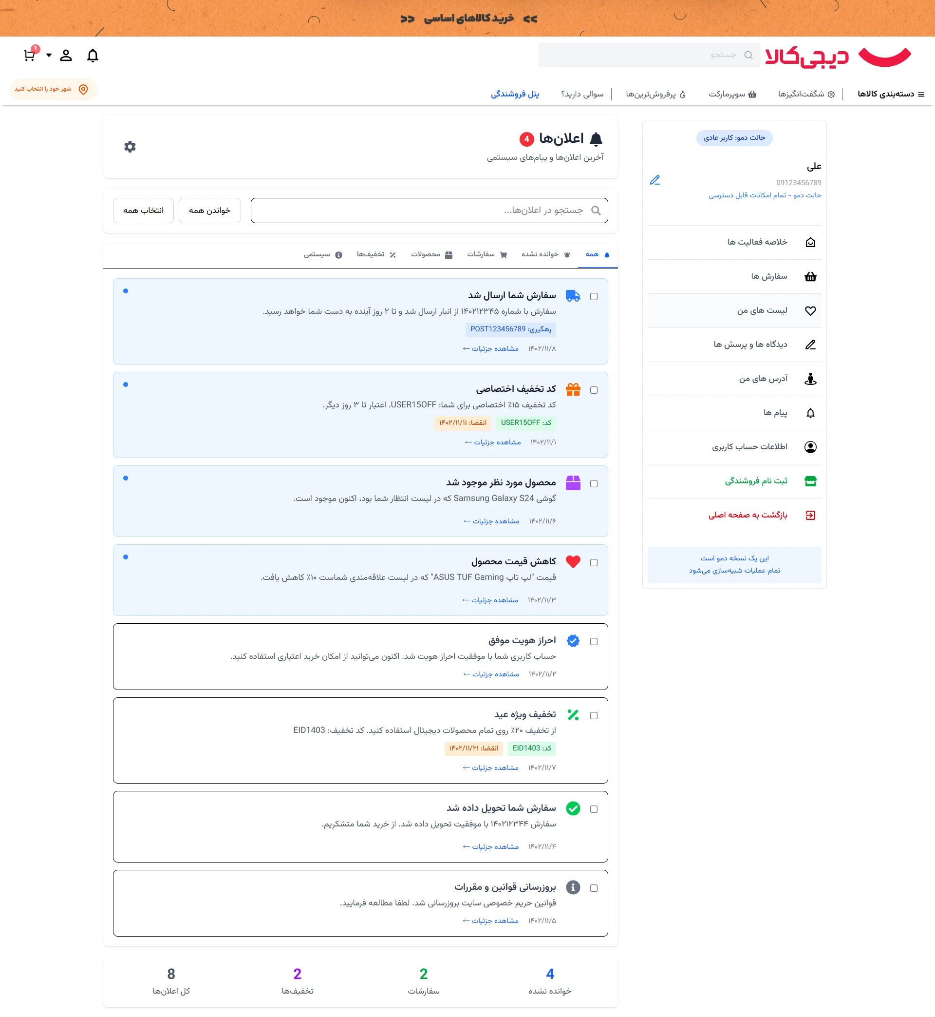 نمونه کار پلتفرم مشابه دیجی کالا همرا پنل کاربری فروشنده و خریدار